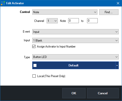 Select and configure the type of control. For X-Keys controllers this will also be "Note". For MIDI controllers this is usually Note for buttons and ControlChange for things like knobs and faders.