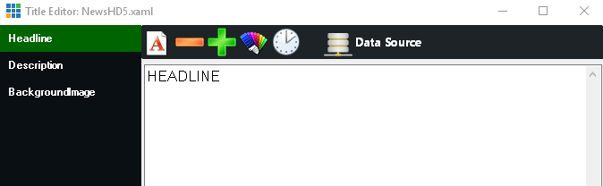2. Select one of the Title fields from the left hand column (such as Headline, Description etc) then click Data Source from the top menu bar.