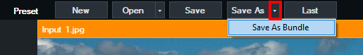 A Preset Bundle can be saved by clicking the arrow next to the Save As button and selecting Save As Bundle.