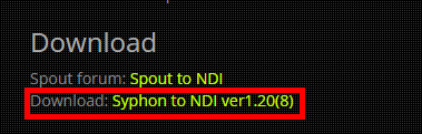 Download the Syphon to NDI app from the following web site: