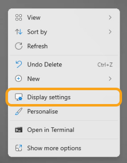 4. Right-click on the Desktop and select 'Display Settings' from the menu.