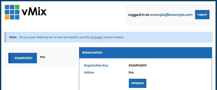 If you need to relocate your vMix registration key, you can login to your vMix Account via our website.